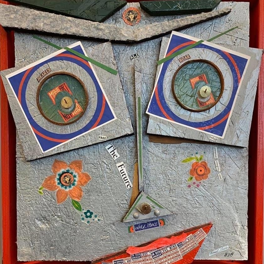 My theme for this solo show is ‘Random Intentions’. I enjoy a very eclectic appreciation for aesthetics, social justice and quality of life issues. My works convey these interests through mixed-media collage, photography, acrylic painting, found object works and any combination of these mediums.
